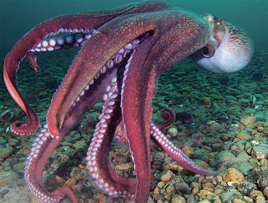문어는 위협을 느끼면 먹물주머니에서 먹물을 뿜어내고 달아나며, 피부는 주변 환경에 따라서, 환경과 유사하게 색을 바꿀 수 있어서 이것으로 자신의 몸을 보호해요.문어는 바다 밑바닥에서 서식하고, 연체동물과 갑각류 등을 섭취하고 살고 있고, 분포 지역은 한국과 일본, 중국 그리고 알래스카 및 북아메리카 등 북태평양 연안에 보통은 서식해요.