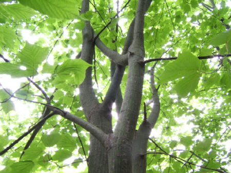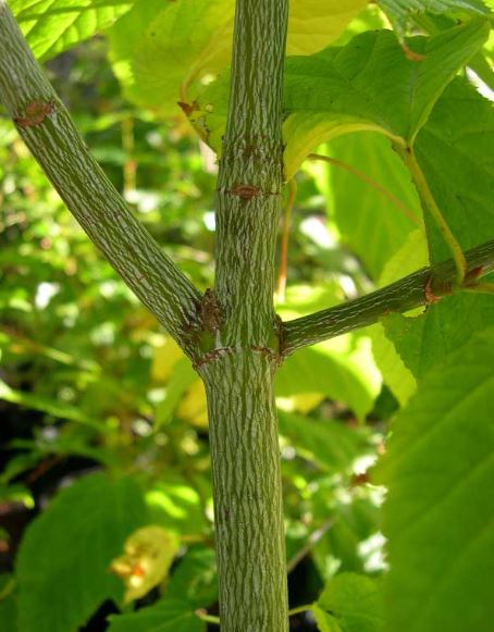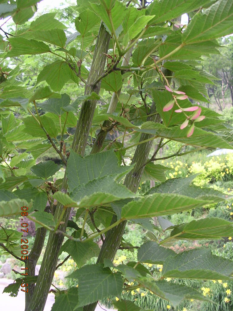 벌나무는 산청목이라고 불리기도 하며 높이는 10~15m이라고 합니다. 600m가 넘는 고지대의 습한 골짜기나 계곡 근처에서는 종종 자라며 나뭇가지가 벌집 모양이라 해서 벌나무라고 불려요. 잎은 넓고 줄기는 연한 녹색이며 줄기가 얇아서 잘 부러지고 껍질이 두꺼워 재질은 희고 가볍습니다.. 꽃은 연한 황록색이며 열매는 시과로 털이 없으며 9~10월에 익습니다. 나뭇결은 아주 부드럽고 나무껍질이 편백나무껍질과 같으며 재목은 오동나무와 유사해요.