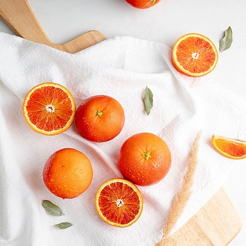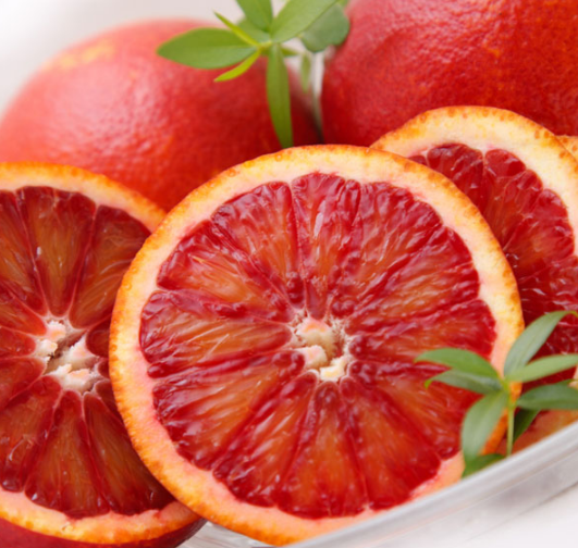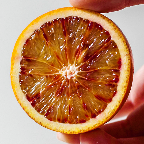 모로 오렌지는 겉모습은 일반 오렌지와 유사하지만 시칠리아의 빨간 보석이라 하는 별명답게 과육이 검빨간 색이라 블러드(blood) 오렌지라고도 불려요. 빨간 빛이 짙을 수록 안토시아닌이 풍부하고 높은 당도와 풍부한 과즙, 깊은 향미를 생성시켜 냅니다. 모로 오렌지는 비타민 C, 플라보노이드, 하이드록시 산, 항산화 성분을 함유한 안토시아닌이 풍부해요.