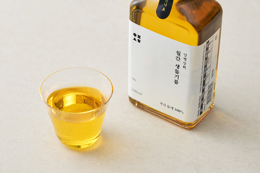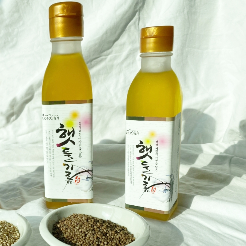 이번 들기름에는 불포화지방산이 많이 포함되어 있어요. 어른병 을 예방하는데 효과가 있고 묵은 나물을 볶을 때 활용할 경우 향기에 취하게 돼요.