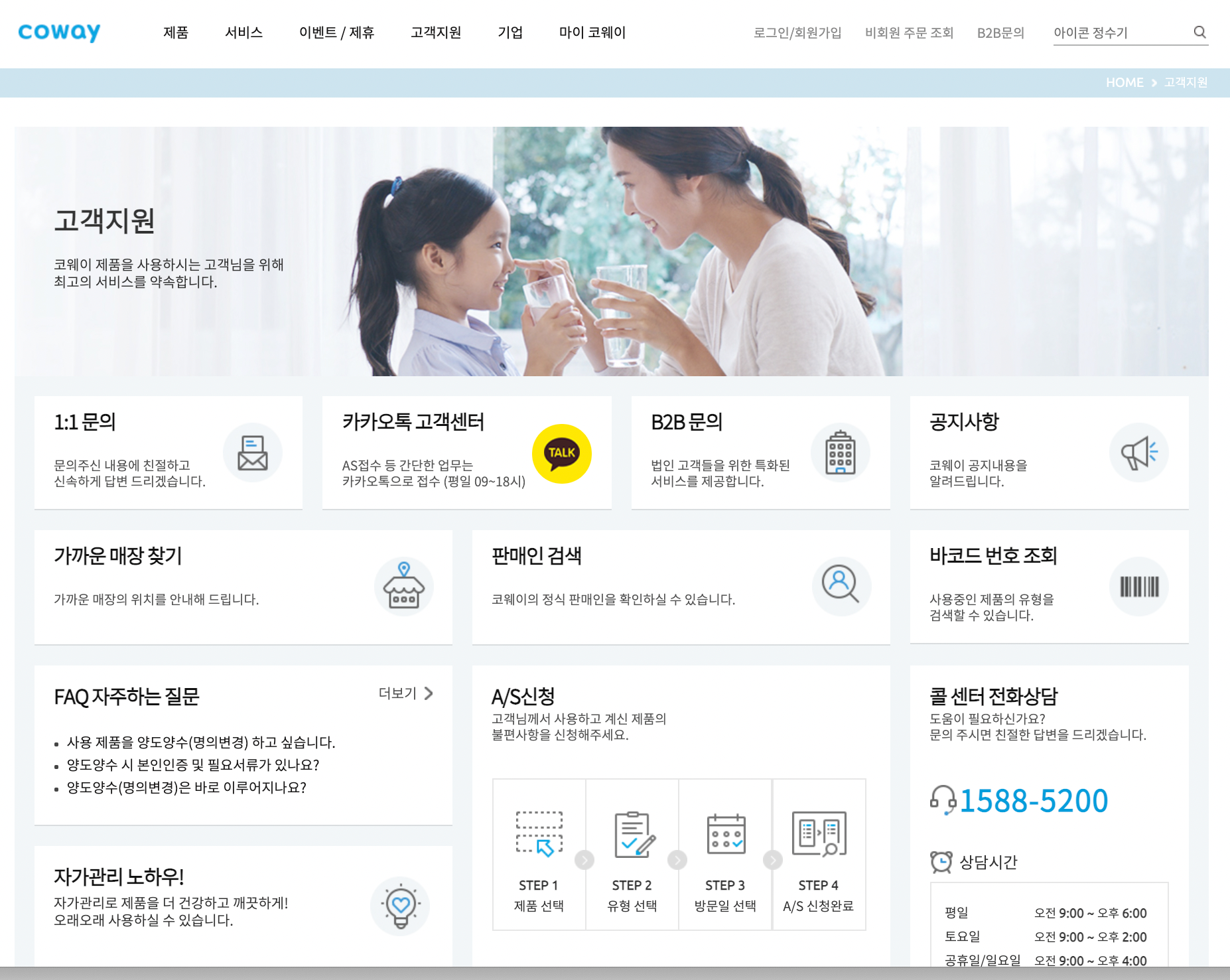 웅진코웨이 고객센터 전화번호 및 A/S 신청방법 안내