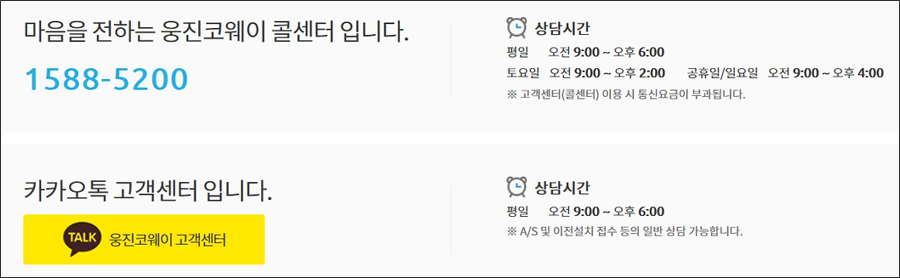 1. 웅진코웨이 고객센터 : 카카오톡